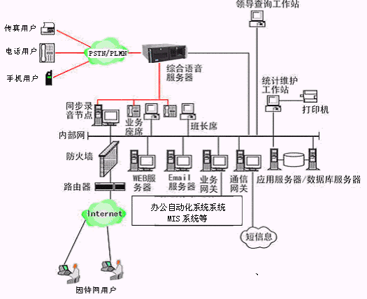整個(gè)多媒體呼叫中心系統(tǒng)對(duì)外面向用戶,對(duì)內(nèi)與整個(gè)市勞動(dòng)局相聯(lián)系,與內(nèi)部管理/服務(wù)等結(jié)為一體,能夠把從用戶那里獲得的各種信息、數(shù)據(jù)全部貯存在龐大的數(shù)據(jù)倉(cāng)庫(kù)中,供領(lǐng)導(dǎo)者作分析和決策之用;形成了對(duì)外服務(wù)于客戶,對(duì)內(nèi)管理、分析、決策系統(tǒng)相結(jié)合的多媒體呼叫中心。