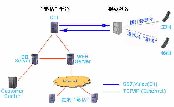 IVR:提供各種"彩話"、 用戶通過撥打IVR定制"彩話"、 通話過程中,用戶可進(jìn)入IVR點(diǎn)播"彩話"