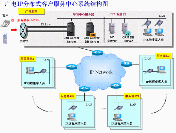 充分利用廣電已有的優(yōu)秀的寬帶網(wǎng)絡(luò)條件,建立IP分布式服務(wù)模式,以城市的各廣電服務(wù)站為單位,實(shí)現(xiàn)本服務(wù)站覆蓋范圍內(nèi)的用戶優(yōu)先由本服務(wù)站座席人員服務(wù)的本地化服務(wù),一方面解決了總部集中服務(wù)的場(chǎng)地、交通、管理等方面的壓力,另一方面本地化服務(wù)也加快了交流的有效性,提高了解決問題的效率,體現(xiàn)出廣電差異化服務(wù)的特色;