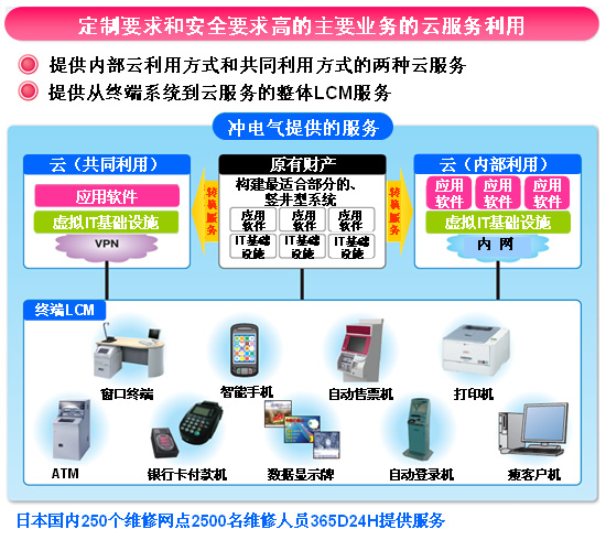CTI論壇(ctiforum)12月9日消息(記者 楊佳林): 沖電氣開始銷售云計算服務(簡稱云服務)—“EXaaS™”,以滿足客戶在任意時間以任意方式使用的需求。“EXaaS™”是整套的IT周期管理云服務,包括系統(tǒng)引進咨詢、開發(fā)、采購和構(gòu)筑、運營支持。該服務超越了以往的云服務,其服務范圍涵蓋了客戶端的終端機以及客戶網(wǎng)絡(luò)的所有部分,實現(xiàn)了客戶IT投資成本最優(yōu)化。