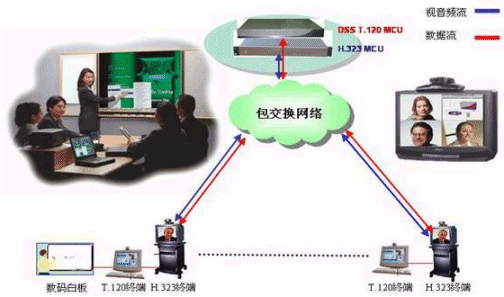 DSS系統(tǒng)可以和任何符合H.320/H.323標(biāo)準(zhǔn)的MCU配合,實(shí)現(xiàn)會(huì)議電視系統(tǒng)中的數(shù)據(jù)功能。