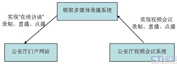 本次采購的銳取多媒體錄播系統(tǒng)不僅能夠與省公安廳已有的視頻會議系統(tǒng)配合進行視頻會議的錄制、直播、點播,還能與視頻會議系統(tǒng)配合實現(xiàn)跨地域的“在線訪談”實時直播、錄制和點播。沒有參加會議或者是沒能收看直播的用戶都能夠在事后點播再收看,避免了專用設備功能單一的缺點,真正的一機多用。