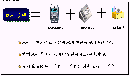 鐵路內(nèi)部員工可以統(tǒng)一所有的通信工具,只使用一個(gè)號(hào)碼,一次呼叫便可以完成通信,使通信更加簡(jiǎn)單、可靠?梢詫(shí)現(xiàn)換機(jī)換網(wǎng)不換號(hào),用戶獲得一個(gè)終身的聯(lián)系號(hào)碼,用戶無(wú)論更換任何通信工具,聯(lián)系號(hào)碼和方式不會(huì)改變。例如:在路局領(lǐng)導(dǎo)找下屬的時(shí)候,只需要撥打他的統(tǒng)一號(hào)碼,便可以直接找到他。不必考慮他是否在外出還是在辦公室,是否更換了手機(jī)號(hào)碼。統(tǒng)一號(hào)碼就像他員工號(hào)碼,始終不變,即撥即通!
