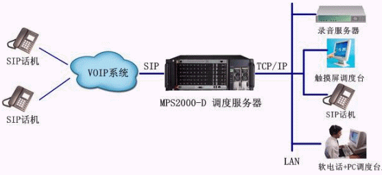 - MPS2000-D調度服務器作為一款IP指揮調度系統(tǒng)通過SIP協(xié)議,接入VOIP系統(tǒng),實現(xiàn)對IP終端用戶的調度控制;