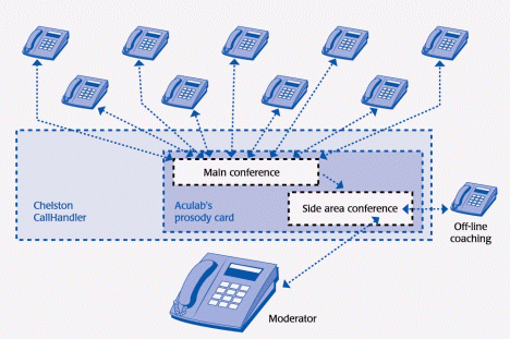 Chelston Call Systems 為RNIB 建立了基于CallHandler-720平臺、并附有錄音設施的會議橋。CallHandler-720是由Aculab Prosody DSP資源板卡集成的,采用開放的架構(gòu)并可通過萬維網(wǎng)進行控制。