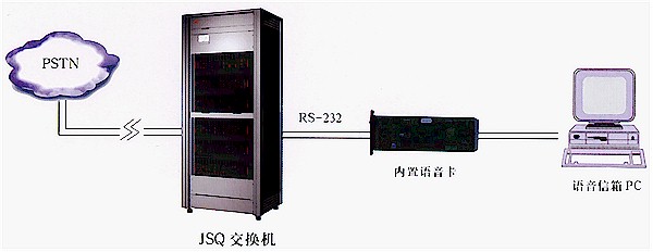 JSQ交換機(jī)計(jì)費(fèi)系統(tǒng)由JSQ交換機(jī)內(nèi)置的留言信箱接口板和通過(guò)串行口相連的PC機(jī)組成。系統(tǒng)采用兩條標(biāo)準(zhǔn)PC串口,不另外增加硬件,確保了系統(tǒng)運(yùn)行可靠。JSQ交換機(jī)語(yǔ)音信箱系統(tǒng)由一條串口提供經(jīng)過(guò)壓縮的數(shù)字語(yǔ)音通道,以確保優(yōu)質(zhì)傳輸和有效利用硬盤(pán)空間,每7兆硬盤(pán)即可保存一小時(shí)的語(yǔ)音信息。另一條串口提供PC用戶(hù)的信息傳輸通道。