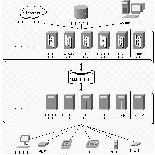 UMS系統(tǒng)將電話網、尋呼網、移動網、互聯(lián)網相互融合,在各個不同網絡間提供通信和信息交換,向最終用戶提供在任何時間、任何地點,以任何方式(如人工電話、自動語音、自動傳真、尋呼、手機短訊、手機上網、電子郵件、WWW瀏覽等)的個人通信服務、個人化信息內容服務和個人化電子商務服務。