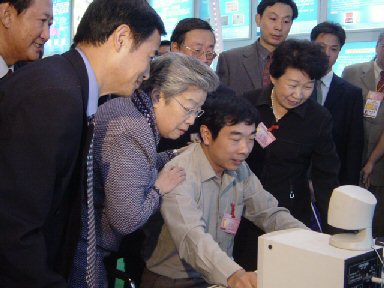 C&E 2.2、嵌入式產(chǎn)品InterSound 3.0和Talking Book電子書等。語音合成給觀眾帶來了全新的感受,流暢自然的語音合成、抑揚(yáng)頓挫的唐詩誦讀吸引了無數(shù)參觀者駐足、觀賞。國務(wù)院副總理吳儀同志參觀安徽展區(qū)時,親臨訊飛展區(qū),對訊飛的語音技術(shù)表現(xiàn)出強(qiáng)烈興趣。科大訊飛陳燕總監(jiān)向吳儀副總理簡要匯報(bào)了中文語音產(chǎn)業(yè)及科大訊飛公司的發(fā)展情況,并親自演示了訊飛電信級和芯片級語音產(chǎn)品。吳儀臉上不時露出微笑,鼓勵訊飛再接再厲,把民族語音產(chǎn)業(yè)做大做強(qiáng)。