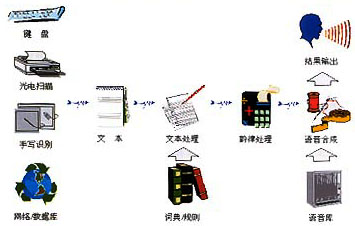 -----按照人類言語功能的不同層次,語言合成也可分成三個層次,它們是:(1)從文字到語音的合成(Text-To-Speech);(2)從概念到語音的合成(Concept-To-Speech);(3)從意向到語音的合成(Intention-To-Speech)。這三個層次反映了人類大腦中形成說話內(nèi)容的不同過程,涉及人類大腦的高級神經(jīng)活動。不難想象,即使是按規(guī)則的文字到語音合成(文語合成)也已經(jīng)是相當(dāng)困難的任務(wù)。為了合成出高質(zhì)量的語言,除了依賴于各種規(guī)則,包括語義學(xué)規(guī)則、詞匯規(guī)則、語音學(xué)規(guī)則外,還必須對文字的內(nèi)容有很好的理解,這將涉及自然語言理解的問題。從這一點講,文語轉(zhuǎn)換系統(tǒng)實際上也可看作一個人工智能系統(tǒng)。圖1顯示了一個完整的文語轉(zhuǎn)換系統(tǒng)示意圖。文語轉(zhuǎn)換過程是先將文字序列轉(zhuǎn)換成音韻序列,再由語音合成器生成語音波形。其中第一步涉及語言學(xué)處理,例如分詞、字音轉(zhuǎn)換等,以及一整套有效的韻律控制規(guī)則;第二步需要先進(jìn)的語音合成技術(shù),能按要求實時合成出高質(zhì)量的語音流。因此一般說來,文語合成系統(tǒng)都需要一套復(fù)雜的文字序列到音素序列的轉(zhuǎn)換程序,也就是說,文語轉(zhuǎn)換系統(tǒng)不僅要應(yīng)用數(shù)字信號處理技術(shù),而且必須有大量的語言學(xué)知識的支持。當(dāng)然其中語音合成終究還是最基本的部分,它相當(dāng)于“人工嘴巴”,任何語言合成系統(tǒng)包括文語轉(zhuǎn)換系統(tǒng),都離不開語音合成器。