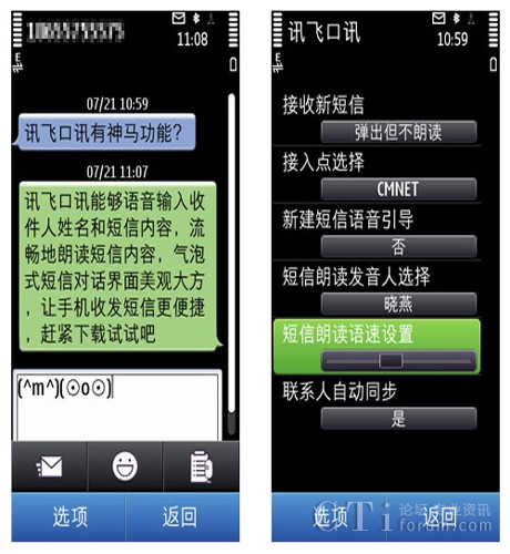 CTI論壇(ctiforum)8月2日消息(記者 張潔):不論是開車還是玩游戲,總是難以騰出手來(lái)操控手機(jī),你是否想過(guò)如果可以通過(guò)耳朵就能聽到短信內(nèi)容,然后說(shuō)說(shuō)話就能回復(fù)短信?近日,科大訊飛與騰訊應(yīng)用中心聯(lián)合首發(fā)了訊飛口訊(Symbian)新版v1.0.1100,該產(chǎn)品支持語(yǔ)音發(fā)送短信及新短信自動(dòng)語(yǔ)音朗讀,大大增添了Symbian手機(jī)的實(shí)用性和趣味性,滿足了廣大用戶解放手指、隨時(shí)隨地發(fā)短信的需求。