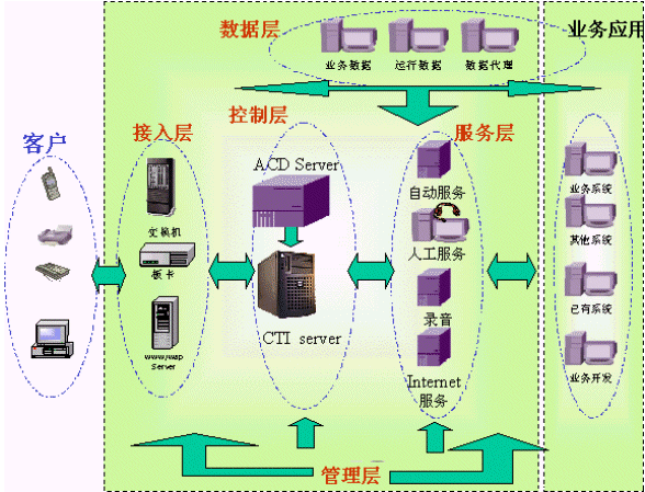 根據(jù)建設(shè)呼叫中心的不同需求,提供基于板卡、交換機(jī)通用呼叫中心,以及Internet呼叫中心三種方案。