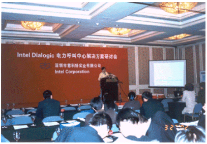 2002年3月27日,佳訊飛鴻公司參加了由美國Intel公司通訊業(yè)務(wù)事業(yè)部和深圳市意科特實(shí)業(yè)有限公司聯(lián)合主辦的“Intel Dialogic電力呼叫中心解決方案研討會(huì)”。公司技術(shù)總監(jiān)王曉暉在會(huì)上做了題為《電力客服系統(tǒng)與AnyTouch平臺(tái)》的報(bào)告,并針對(duì)電力行業(yè)的特點(diǎn),向與會(huì)者介紹了基于Intel Dialogic語音卡系列的呼叫中心解決方案以及可無縫升級(jí)為交換機(jī)和Internet呼叫中心解決方案。佳訊公司還向與會(huì)代表演示了基于公司自主研發(fā)的AnyTouch平臺(tái)的HDSI120路高密度語音卡呼叫中心系統(tǒng)。報(bào)告和演示得到了會(huì)議主辦單位和與會(huì)代表的關(guān)注。