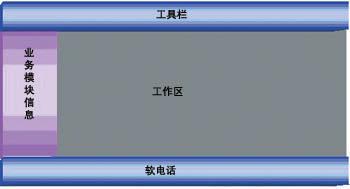 軟電話提供標(biāo)準(zhǔn)的呼叫控制功能,如座席的登錄、注銷等。業(yè)務(wù)模塊信息根據(jù)該座席的技能設(shè)置顯示該座席能夠使用的座席業(yè)務(wù)模塊,工作區(qū)是座席使用業(yè)務(wù)模塊的區(qū)域,業(yè)務(wù)模塊的調(diào)入可以是系統(tǒng)根據(jù)自動(dòng)服務(wù)傳遞的參數(shù)自動(dòng)彈出,也可以是座席人員手工選擇相應(yīng)的業(yè)務(wù)操作。同時(shí),業(yè)務(wù)模塊通過標(biāo)準(zhǔn)的接口和軟電話模塊進(jìn)行通信,取得或者設(shè)置系統(tǒng)的呼叫參數(shù)或操作,包括提取系統(tǒng)主被叫號碼、用戶按鍵等。通過工具欄提供系統(tǒng)的菜單、快捷鍵、快捷按鈕的使用。通過這種方式,系統(tǒng)可以隨時(shí)增加、修改座席的業(yè)務(wù)模塊,而無須修改整個(gè)座席端,有利于系統(tǒng)業(yè)務(wù)的分步實(shí)施,大大縮短了系統(tǒng)的整個(gè)建設(shè)周期。