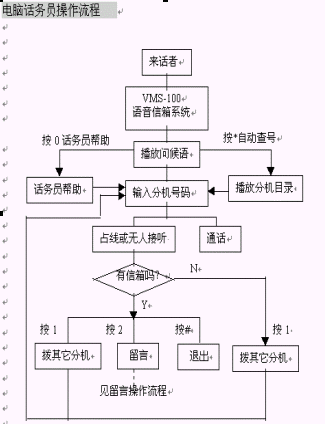 2. 在使用了電腦話務員忙轉接功能的情況下,當分機占線時如果您選擇了留言,系統(tǒng)便將您的電話接通至相應的留言信箱;當分機無人接聽時交換機啟動無應答呼叫轉移功能,將您的電話重新接回到VMS-100