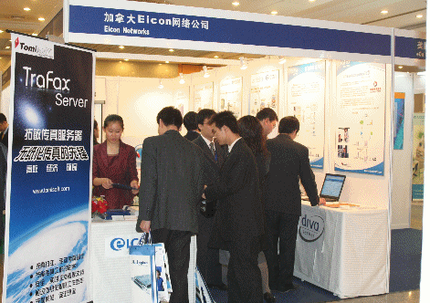 拓敏軟件Tomisoft與加拿大Eicon Networks共同展示了拓敏傳真服務器TraFax Server----企業(yè)級無紙化傳真解決方案。在精美的展板與宣傳冊的配合下,通過講解員的專業(yè)介紹,盡情地展示了目前國內最優(yōu)秀的無紙化傳真解決方案的非凡風采。TraFax Server與CallCenter、 CRM、ERP的完美結合引起了與會代表們的關注。