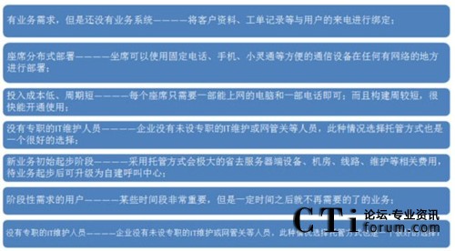 基于云計(jì)算(400+Saas)的ToneThink強(qiáng)訊托管型呼叫中心采用世界最先進(jìn)的呼叫中心核心技術(shù),企業(yè)無(wú)需投入任何軟件、硬件,即可根據(jù)業(yè)務(wù)需求立刻擁有一套自己的呼叫中心系統(tǒng),獲得呼入式、呼出式營(yíng)銷服務(wù)帶來(lái)的超值回報(bào)。那么什么情況下您適合選用托管型的呼叫中心呢?