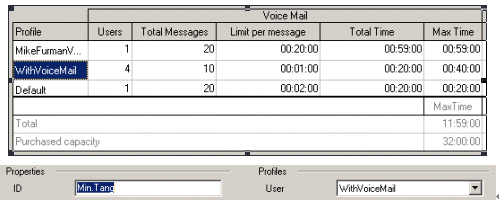 管理員可以指定用戶(分機)是否具備語音郵箱功能,并可以指定用戶語音郵箱的屬性,如:語音郵件數(shù)量、時間長度、總時間等。