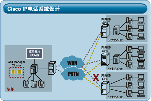 思科公司提供的IP電話系統(tǒng)由IP電話呼叫控制服務(wù)器、IP電話機和路由器構(gòu)成,是一個高可用性、功能強大、應(yīng)用靈活的解決方案。