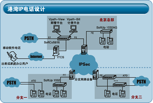 對于分支機構(gòu),港灣公司的解決方案超出了我們的預(yù)期。他們給予了兩套方案,第一種方案和我們標書中的基本要求一樣,提供了內(nèi)部通信的單獨IP話機,同時保留本地直線電話。第二種方案中則全部遷移到IP電話平臺中,依賴SoftUp201/202