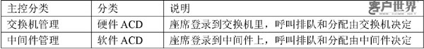 觀察一下國內(nèi)的呼叫中心中間件的ACD應(yīng)用現(xiàn)狀,我們先做一個分類。