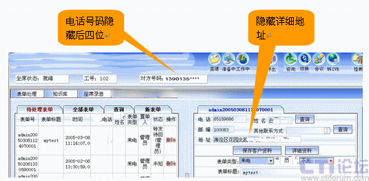 例如電話號(hào)碼、送貨地址是最為重要的商業(yè)信息。將部分信息對(duì)電銷人員、中間環(huán)節(jié)的人員隱藏使其無法進(jìn)行“飛單”,而在送貨環(huán)節(jié)再OPEN詳細(xì)信息。如下圖所示: