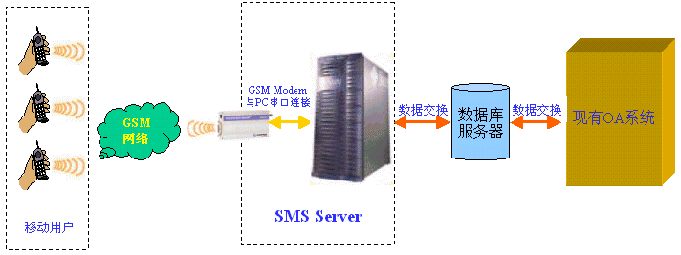 短信收發(fā)服務(wù)器是通過數(shù)據(jù)交換的方式與您的系統(tǒng)進行連接,目前支持?jǐn)?shù)據(jù)庫的交換方式,可以通過Oralce、MS SQL SERVER 、MS ACCESS等關(guān)系型數(shù)據(jù)庫和現(xiàn)有系統(tǒng)進行數(shù)據(jù)交換。