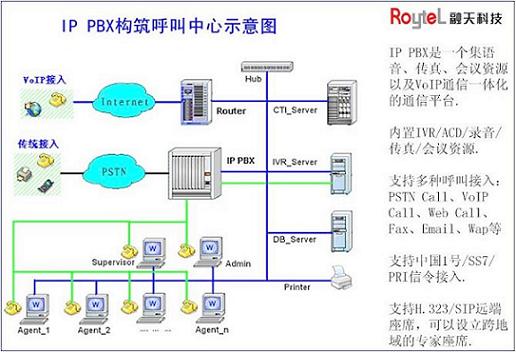 RT-CCP1000系列,將CTI服務(wù)器、PBX交換機(jī)、CALLCENTER呼叫中心、CRM客戶(hù)管理、CDR通話詳細(xì)報(bào)告、VOIP網(wǎng)絡(luò)電話、IVR自動(dòng)語(yǔ)音應(yīng)答、ACD自動(dòng)話務(wù)分配、FAX傳真服務(wù)器、Recording等充分融于一體,無(wú)須外掛任何其他設(shè)備、就能實(shí)現(xiàn)大容量的電話呼入/呼出處理、電話轉(zhuǎn)接等傳統(tǒng)PBX的所有功能,同時(shí)還提供傳統(tǒng)PBX所不具備的語(yǔ)音信箱、客戶(hù)關(guān)系管理、電話會(huì)議、VoIP等高端系統(tǒng)功能。以極其低廉的成本,為廣大企業(yè)用戶(hù)提供了強(qiáng)大的功能和豐富的應(yīng)用。本呼叫中心的面市,大大降低了呼叫中心的應(yīng)用門(mén)檻,將徹底改變只有大中型企業(yè)才能建設(shè)呼叫中心的傳統(tǒng)觀念。