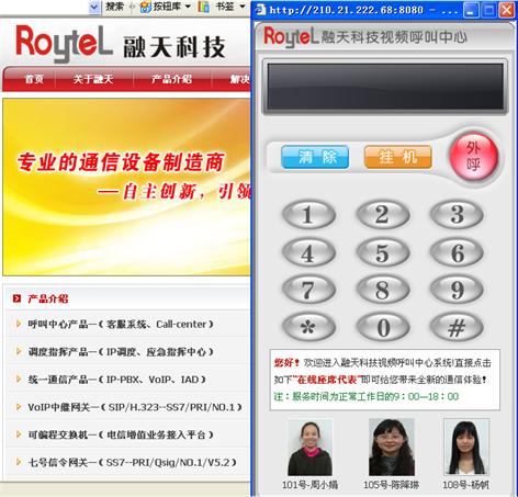 融天科技視頻呼叫中心都采用了非常先進(jìn)的Web-Call和視頻通信技術(shù),將軟電話控件嵌入到企業(yè)網(wǎng)站上,而對于企業(yè)來說一切都變得非常簡單,無論何時何地,客戶在訪問企業(yè)網(wǎng)站時,可以通過傻瓜式的WEB界面點擊在線視頻座席,只要客戶PC裝有麥克風(fēng)和攝像頭即可以網(wǎng)頁方式進(jìn)行面對面的進(jìn)行視頻和語音交流,同時也能向用戶播放相關(guān)的產(chǎn)品資訊,讓您抓住即將流失準(zhǔn)客戶,直接為您的企業(yè)創(chuàng)造價值。