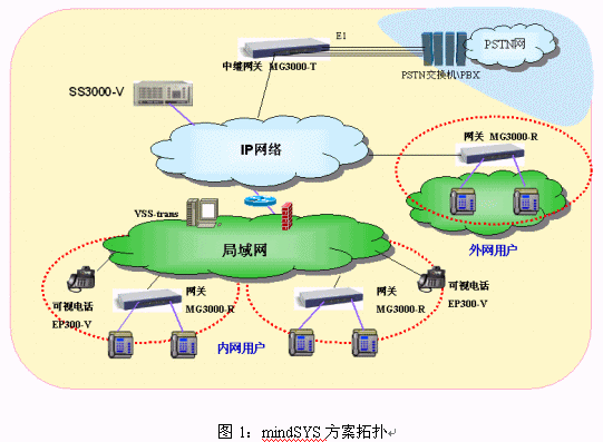 mindSYS方案通過數(shù)字中繼或者模擬中繼與電信運營商的程控交換機(jī)連接,無縫的接入PSTN網(wǎng)絡(luò),使得VOIP與傳統(tǒng)的電話、手機(jī)隨時互通,網(wǎng)內(nèi)網(wǎng)外同樣打電話,溝通世界的每一個角落。