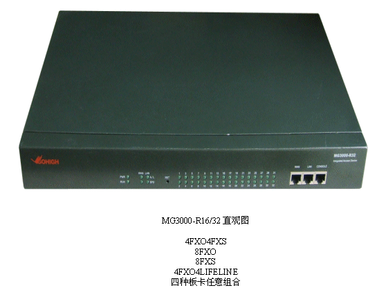 在介紹MG3000-R系列產(chǎn)品的典型應(yīng)用時(shí),產(chǎn)品中心研發(fā)經(jīng)理介紹到:“MG3000-R適用于企業(yè)原有直線電話系統(tǒng)的VOIP改造、原有PBX電話系統(tǒng)的VOIP改造。與軟交換配合后可做中繼使用,也是企業(yè)異地分支機(jī)構(gòu)的最佳選擇。再有,在IP呼叫中心中,它還可以構(gòu)建呼叫中心的遠(yuǎn)端坐席。此外還有話務(wù)臺(tái)等應(yīng)用。”