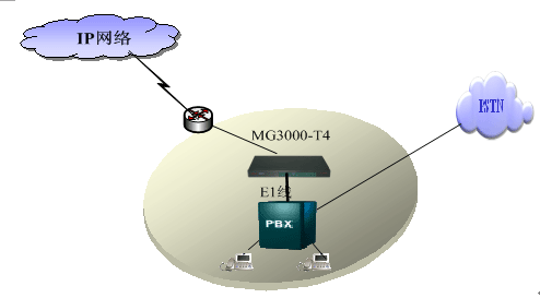 MG3000-T4提供1、2、4E1中繼,直接提供數(shù)字中繼口和PBX交換機(jī)對(duì)接,PBX交換機(jī)原有的撥號(hào)習(xí)慣和撥號(hào)方式不做改變,可以通過(guò)路由選擇的方式來(lái)走原來(lái)的PSTN網(wǎng)絡(luò)或者IP網(wǎng)絡(luò),同時(shí)通過(guò)MG3000-T4來(lái)做電路交換和IP網(wǎng)的分組交換的轉(zhuǎn)換,實(shí)現(xiàn)該分支機(jī)構(gòu)和其他分支機(jī)構(gòu)的互連互通。