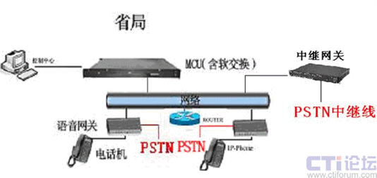 將普通電話與PSTN線路連接到帶路由逃生的語音網(wǎng)關(guān)上,當(dāng)撥打內(nèi)部電話的時候,語音網(wǎng)關(guān)會通過內(nèi)部網(wǎng)絡(luò)找到MCU軟交換上注冊的電話號碼,完成與所需呼號的地市之間的通訊;當(dāng)撥打外部電話時,系統(tǒng)會到MCU軟交換上尋找所撥打的電話號碼,如果尋找不到,則語音網(wǎng)關(guān)將啟動逃生功能,自動轉(zhuǎn)向PSTN線路,與外線用戶建立連接。則無論呼叫PSTN電話還是分機(jī)機(jī)構(gòu)電話,都可以直接撥號;分支機(jī)構(gòu)也可以通過該E1呼入省公司分機(jī)。原有E1中繼作為PSTN呼入時使用,保留原有PSTN號碼。