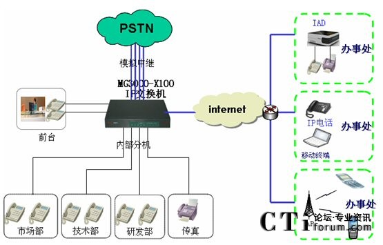 MG3000-X100替代傳統(tǒng)PBX交換機應(yīng)用方案