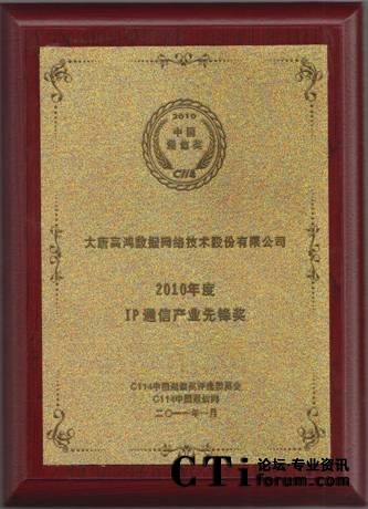 在評選工作中,通過專家評選以及廣大網(wǎng)友投票選舉,高鴻股份數(shù)據(jù)網(wǎng)絡技術股份有限公司(以下簡稱“高鴻股份”)憑借自身雄厚實力和優(yōu)良服務,在2010年的工作得到了大家充分的肯定,喜獲 “IP通信產(chǎn)業(yè)先鋒獎”獎項。
