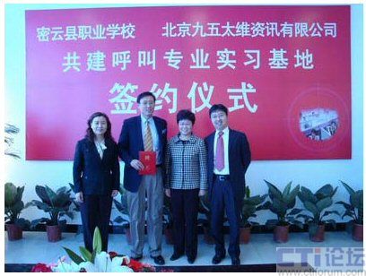 CTI論壇(ctiforum)04月30日消息: 近日,密云縣職業(yè)學(xué)校與北京九五太維資訊有限公司校企合作共建呼叫專業(yè)實(shí)習(xí)基地簽約儀式在密云縣職業(yè)學(xué)校隆重舉行,市教委職成處處長李敏,縣委常委副縣長王春林、副縣長錢福生、副縣長徐芳出席簽約儀式并發(fā)表了講話。密云縣教委主任李鐘勤,北京九五太維資訊有限公司董事長汪遠(yuǎn),首席執(zhí)行官李寶民及其培訓(xùn)師團(tuán)隊(duì),密云縣經(jīng)濟(jì)開發(fā)區(qū)總公司及部分入?yún)^(qū)呼叫企業(yè)出席了簽約儀式。在簽約儀式上,密云縣教委主任李鐘勤向九五太維公司首席執(zhí)行官李寶民博士頒發(fā)了聘書,聘請(qǐng)李寶民博士為密云縣職業(yè)學(xué)校名譽(yù)校長。