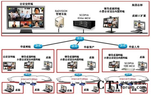 隨著業(yè)務(wù)的不斷擴大,華泰保險經(jīng)紀(jì)有限公司需要不斷加快信息交流的速度,以確保信息交流的暢通。華泰保險經(jīng)紀(jì)有限公司希望能夠通過現(xiàn)有網(wǎng)絡(luò),利用先進的通信傳輸技術(shù),組建整個集團公司的視頻會議系統(tǒng),并能保證視頻會議系統(tǒng)的正常、穩(wěn)定運行。同時,華泰保險的領(lǐng)導(dǎo)希望能夠充分利用已經(jīng)建成的公司網(wǎng)絡(luò)資源,將各地營業(yè)部連接在一起,用于召開不同規(guī)模、各種形式的行政會議和業(yè)務(wù)會議、業(yè)務(wù)培訓(xùn),以達到提高工作效率、節(jié)省差旅成本、加強總部對各個分支機構(gòu)管理的目的。從而真正增強企業(yè)的競爭力,推動企業(yè)信息化建設(shè)的發(fā)展。