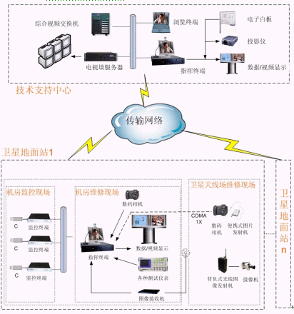 技術(shù)支持中心技術(shù)專家在指導(dǎo)維修現(xiàn)場進行遠(yuǎn)程技術(shù)支持或遠(yuǎn)程培訓(xùn)時,根據(jù)現(xiàn)場環(huán)境的不同可采用固定方式與移動方式對維修現(xiàn)場技術(shù)人員進行視、音頻實時可視指導(dǎo)。大大縮短了技術(shù)人員的排障時間,保證了通信設(shè)備的正常運行。
