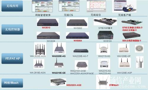 H3C具有FIT AP/FAT AP全系列無(wú)線(xiàn)產(chǎn)品。高端無(wú)線(xiàn)控制器產(chǎn)品WX6103,是業(yè)界第一款支持萬(wàn)兆的、采用多核處理器的產(chǎn)品,單個(gè)控制板可以提供高達(dá)640個(gè)AP的接入、管理能力。WX3024無(wú)線(xiàn)控制器,集成24個(gè)交換口,同時(shí)支持POE+以太網(wǎng)供電功能。H3C同時(shí)還提供插卡形式的控制器,配合S9500、S7500系列交換機(jī)使用,具備更高的系統(tǒng)容量、性能及可靠性。