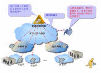 在公安系統(tǒng)中,有時候出現(xiàn)緊急案件,需立刻部署任務(wù),例如要求全市所有民警同時出動進行路口封鎖及排查!如果一個一個打電話通知將會很麻煩,如果有電話廣播功能將是很方便的,可以同時接通很多電話,將命令廣播下去。華為3Com公司V2oIP系統(tǒng)在強大的GK支持下,只要事先定義了特服號對應(yīng)的電話號碼群組,撥通特服號就能實現(xiàn)電話廣播。