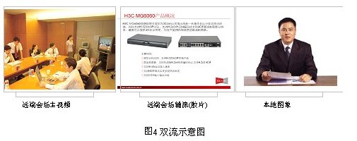 雙視頻流傳輸是指同時傳輸兩路動態(tài)視頻到各分會場:雙流是指分會場能夠將本會場的兩路視頻同時傳輸到MCU上,MCU 能夠將兩路視頻同時傳輸到各分會場。ME5000與MG6060配合可以將終端第二路視頻傳輸到其他會場,適用于在開會的同時,對文件、圖片講解,使會議更加生動,內容更加豐富。