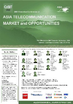 2006亞洲信息及通信技術(shù)展覽會,即亞洲CeBIT展將于今年9月17日至20日在上海新國際博覽中心召開。由中國國際貿(mào)促會電子信息行業(yè)分會與德國漢諾威展覽公司聯(lián)合主辦的這一展會,近300家國內(nèi)外廠商參展,將分為數(shù)字設(shè)備及系統(tǒng)、商務(wù)應(yīng)用、通信三大展區(qū),多方位展現(xiàn)ICT行業(yè)的最新趨勢,并成為業(yè)內(nèi)廠商的專業(yè)貿(mào)易平臺。本次CeBIT展會期間(9月18、19日兩天),將在浦東證大麗笙酒店召開“2006亞洲通信及信息市場管理層論壇”。包括中國國家信息產(chǎn)業(yè)部、中國電信、韓國SK電訊、BDA中國等多家政府機(jī)關(guān)、運(yùn)營商、制造商將參加本次論壇,并做重要發(fā)言。