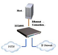 下圖顯示了一個小容量iSX4000 UAP系統(tǒng),該系統(tǒng)由一臺iSX4000 交換機和一臺主機服務(wù)器構(gòu)成,主機上運行所有的軟件,包括主控軟件、用戶應(yīng)用程序和