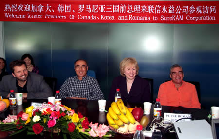 日前,加拿大前總理金·坎貝爾女士、韓國(guó)前總理李洪九、羅馬尼亞前總理彼得·羅曼一行受中國(guó)人民外交學(xué)會(huì)的邀請(qǐng)來華進(jìn)行訪問,旨在促進(jìn)三國(guó)與中國(guó)人民之間的友好往來和了解我國(guó)的社會(huì)經(jīng)濟(jì)發(fā)展。9月3日,中國(guó)人民外交學(xué)會(huì)安排這三國(guó)前總理來到中關(guān)村科技園區(qū)的北京聯(lián)信永益科技有限公司參觀,了解中關(guān)村新技術(shù)開發(fā)區(qū)內(nèi)中小企業(yè)發(fā)展和創(chuàng)業(yè)情況。