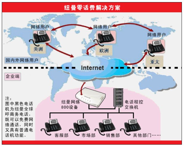 電話通訊技術(shù)發(fā)明以來(lái)最震撼的革命——零話費(fèi)解決方案由紐曼開始,該方案由紐曼全球呼智能商務(wù)電話和網(wǎng)絡(luò)800組成,操作簡(jiǎn)單、音質(zhì)清晰,通話雙方用普通電話機(jī)實(shí)現(xiàn)免費(fèi)通話。