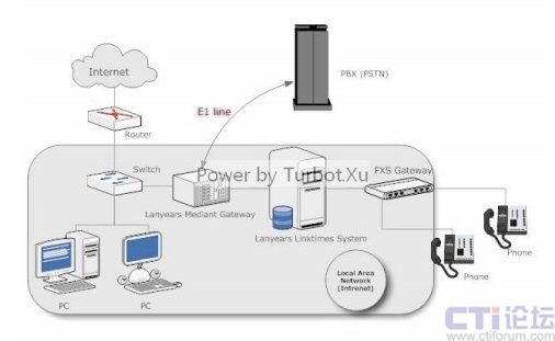 眾所周知,我們?cè)谶M(jìn)行語音通信時(shí),最為重要的就是語音的質(zhì)量,有人會(huì)提出,這種以IP傳送語音的方式不能保證語音質(zhì)量,當(dāng)然,這種擔(dān)憂是有所必要的,但如果你仔細(xì)看看上面的拓?fù)鋱D后會(huì)發(fā)現(xiàn),這個(gè)方案中用到IP的地方都是在局域網(wǎng)中處理的,并沒有牽扯到Internet