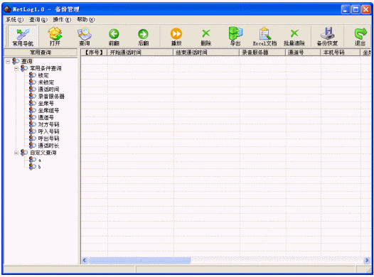 針對備份語音記錄文件(包括DVD光盤備份和磁盤備份)查詢、管理功能,查詢過程以及錄音操作與錄音管理功能模塊完全相同,此外還提供了恢復(fù)的功能。