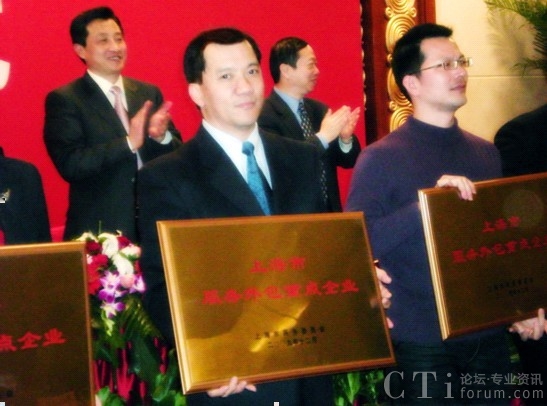 CTI論壇(ctiforum)1月27日消息(記者 張塵):2010年1月20日,上海市商務(wù)委員會(huì)舉行服務(wù)外包示范區(qū)和重點(diǎn)企業(yè)授牌儀式,上海市副市長唐登杰親臨會(huì)場,并向陸家嘴軟件園、長寧軟件園、天地軟件園三家專業(yè)園區(qū)以及44家服務(wù)外包重點(diǎn)企業(yè)授牌。