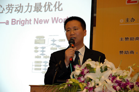 下面再介紹一下勞動(dòng)力優(yōu)化。這兩年我們明顯感覺到呼叫中心發(fā)展非?,我們經(jīng)常聽到這個(gè)呼叫中心在擴(kuò)人,那個(gè)呼叫中心在增加新的人,這個(gè)增加的速度使呼叫中心從十幾個(gè)人到幾百個(gè)甚至上千,那么我們?cè)趺礃尤ス芾磉@支龐大的隊(duì)伍,怎么提高團(tuán)隊(duì)的協(xié)作能力和工作的效率,這是我們面臨的問題。從外部來說,我們的市場(chǎng)競(jìng)爭(zhēng)和用戶的服務(wù)在加強(qiáng),我們要用低成本提供更高的服務(wù),那么我們只有依靠我們的人,我們要提高我們?nèi)说募寄,提高組織能力,所以我們說員工是我們呼叫中心最重要的資產(chǎn)。從內(nèi)部來看,具體到我們的呼叫中心,我們主要有三個(gè)方面的壓力:第一個(gè)是在流程方面,其實(shí)我們很多呼叫中心不缺乏優(yōu)秀的流程也不缺乏優(yōu)秀的團(tuán)隊(duì),但是目前的問題是大部分的流程是人工的,大家看到有績(jī)效管理的、有培訓(xùn)的、有質(zhì)監(jiān)的這些流程貫穿在整個(gè)的呼叫中心當(dāng)中,人工流程帶來的不僅僅是耗費(fèi)時(shí)間和能力,還使得我們的員工在瑣碎的事情中奔波,不會(huì)去做更高層次的管理工作。同時(shí)因?yàn)槭侨斯ち鞒蹋Y源上的共享和溝通是缺乏的,往往是不利的。第二個(gè)從信息上面來說,我們呼叫中心的數(shù)據(jù)會(huì)有一些人工流程,我們會(huì)安排一些人把數(shù)據(jù)填寫到報(bào)表中,這個(gè)報(bào)表也是我們做出決策的一個(gè)依據(jù)。這樣一種人工搜集資料的方式,造成很多人工流程的數(shù)據(jù)不完整,也就是我們的管理者不能夠拿到所有的資料。還有就是我們的效率降低了,就是管理層已經(jīng)看到問題的時(shí)候,可能是問題已經(jīng)暴露了,或者說是發(fā)生了更大的問題。