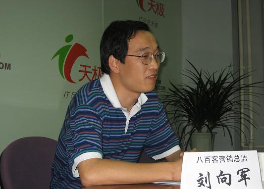 劉向軍:一個公司的名稱一定有它的含義。當時創(chuàng)業(yè)的時候來講,這個名字意思很多。其中很重要的就是一個理念。當時對未來市場的評估看不太清楚,但是對一個提供在線托管服務(wù)廠商,單位廠商認為至少要到八百個客戶。所以八百客具有八百個客戶的意思。當然還有其他的意思。現(xiàn)在八百客經(jīng)過這么兩年的時間,無論從產(chǎn)品技術(shù),還是從客戶的現(xiàn)在擁有量,還是在市場影響層面,已經(jīng)站住腳跟。當然一個行業(yè)的發(fā)展,這種趨勢越來越快。
