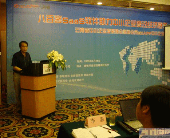 CTI論壇(ctiforum)05月07日消息: 4月24日下午,由云南省中小企業(yè)發(fā)展協(xié)會主辦、八百客(北京)軟件有限公司協(xié)辦的“八百客SaaS軟件助力中小企業(yè)度過經(jīng)濟寒冬——云南省中小企業(yè)發(fā)展協(xié)會贈送會員800APP中小企業(yè)版活動”在昆明邦克飯店隆重舉行。云南省中小企業(yè)發(fā)展協(xié)會秘書長華松、八百客首席應(yīng)用專家高少義與來自云南省近100家的中小企業(yè)代表,共同探討了如何通過信息化建設(shè)方式來幫助中小企業(yè)獲得商業(yè)機會,把握商機,提高企業(yè)經(jīng)營業(yè)績。